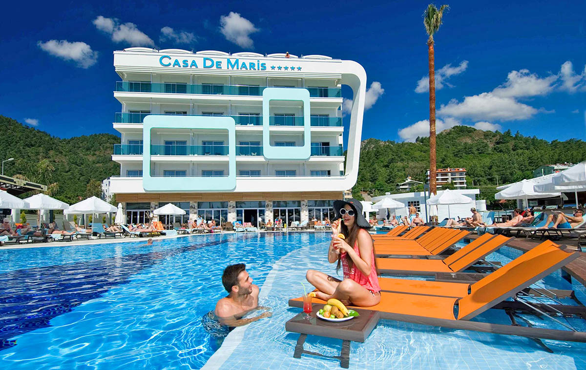 The modern and stylish Casa De Maris is situated in a peaceful area on the outskirts of Marmaris and with the beach just steps away, yet is within easy reach of the bustling resort centre for those looking to enjoy the many amenities and lively nightlife on offer. There’s a trendy pool area ideal for laid-back days soaking up the sun and a choice of bars and restaurants. Accommodation is spacious and chic, and is well equipped with all the amenities you’ll need for an enjoyable stay here. A perfect choice for couples and friends!