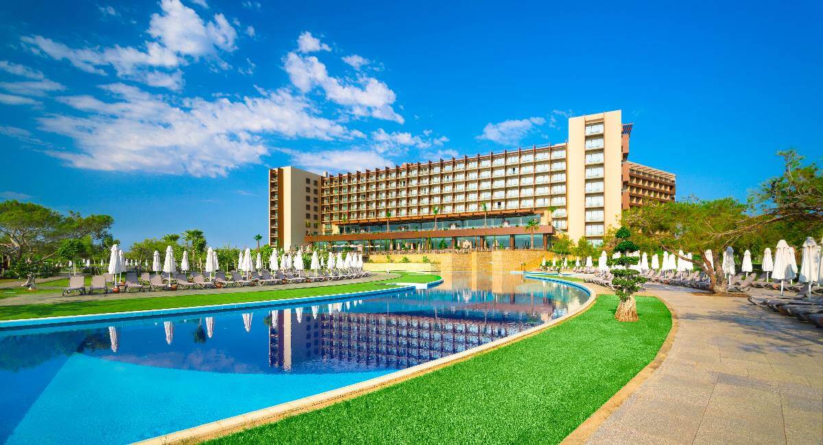 Boasting a beautiful beachfront location amidst the rural unspoilt scenery of North Cyprus, this extravagant resort offers an abundance of opulent facilities and accommodation in an exotic and peaceful atmosphere. Impressive throughout with classy modern décor and endless tropical gardens surrounding glamorous pools, thrilling activities from water gymnastics to amphitheatre shows and a fantastic Kids Club… it’s discerning guests of all ages can expect to be spoilt for choice!