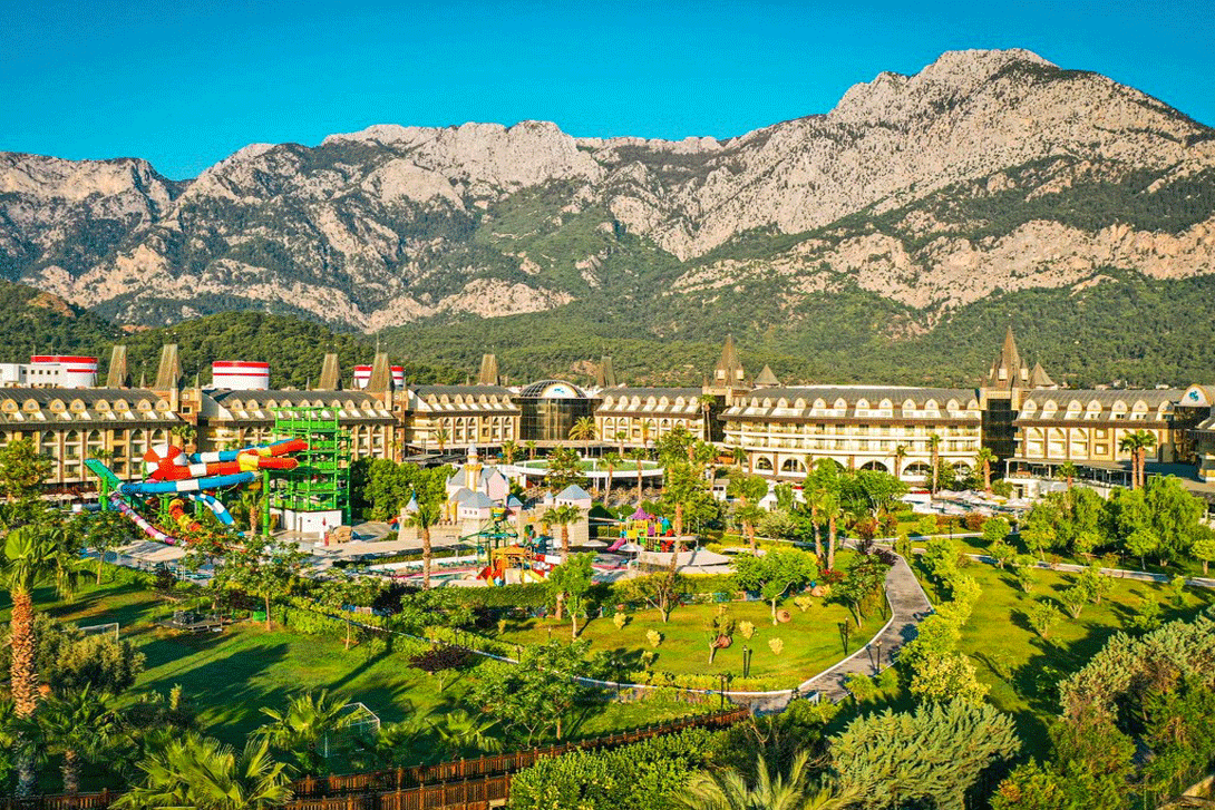 Set at the foot of the picturesque Taurus Mountains this family orientated hotel boasts a beautiful private sandy beach, pools, an aquapark and a wealth of fun activities the whole family can enjoy.