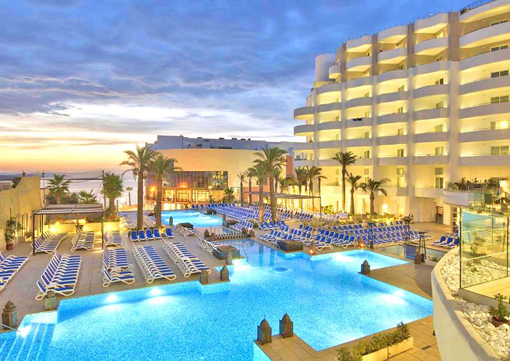 The all-inclusive option means that you can let your hair down and relax with drinks at the lounge bar each evening before enjoying a wonderful meal in one of the hotel’s renowned restaurants. The indoor and outdoor pools make this a year-round place to relax in the sun with views across St Paul’s Bay from the rooftop terrace.