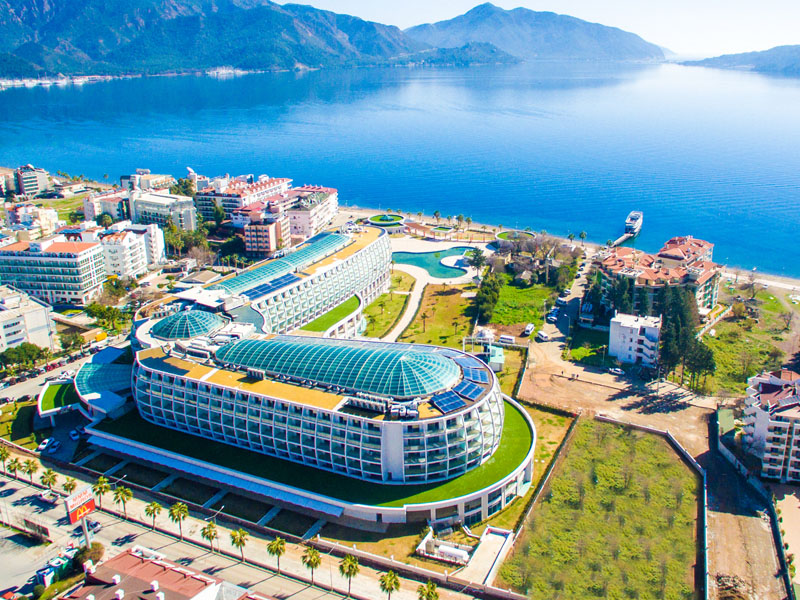 In a striking contemporary building, this beachfront, all-inclusive hotel is just 10 mins walk from Aqua Dream Water Park and 7 mins from Marmaris Castle & Museum Dalaman (DLM).