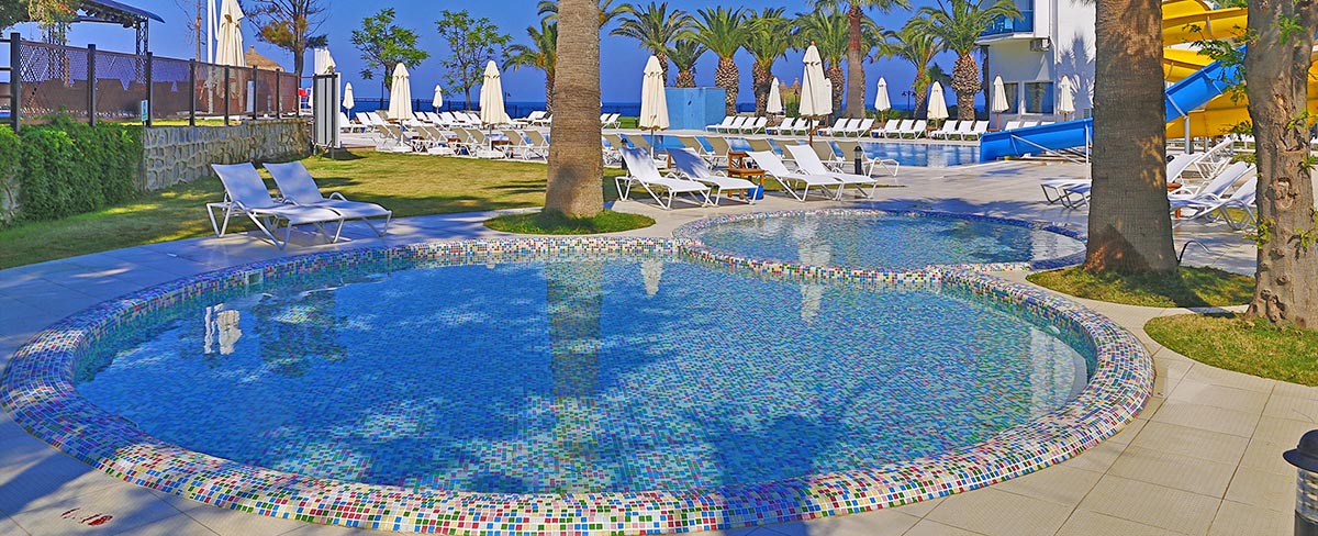 The complex is situated at just a few minutes from a lovely sandy beach as well as a pedestrianized promenade, where travelers can find an array of shop, cafe, bars and restaurants. A bus stop stands 300m from the hotel providing easy access around the resort. Along with its spacious reception and lobby area, the hotel has beautiful rooms, world-class indoor and outdoor dining options, large sun terraces and a pleasant children's area. Refurbished in 2012 the rooms have a bright, fresh decor and are modernly equipped and furnished with all the necessary amenities to ensure a perfect stay. Guests can benefit from the spacious grounds with outdoor pool, a manmade beach and a long jetty from which guests can enter the sea.