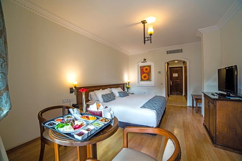 Don’t miss Kyrenia Castle, set between dramatic mountains and the azure sea. Dining options abound, from traditional Turkish mezes at Niazi’s to rooftop restaurants with panoramic views, or indulge in luxury dining at Nima Restaurant Lounge & Bar. or beach lovers, Kervanseray public beach is just a short drive away, and the hotel offers a complimentary shuttle service for easy access.