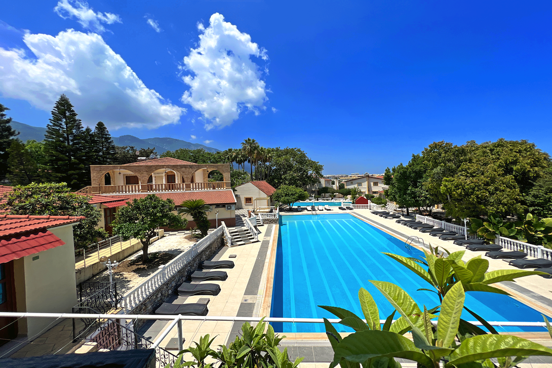 Our lush garden resort, nestled in the foothills of the Kyrenia Mountain range, offers the perfect escape for couples and families alike. Enjoy exceptional accommodations and top-notch amenities, including a half-Olympic-sized pool, a private adults-only pool, and an exciting water slide for children. Immerse yourself in the breathtaking scenery, relax, have fun, and create unforgettable memories.