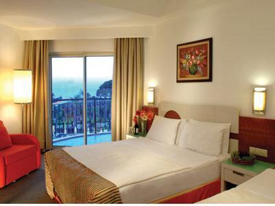 Local amenities are just a short walking distance away from the hotel. Public transport links are just 130 metres away. Antalya Airport is situated just 63 km away from the resort.This wonderful resort enjoys a charming design. The guest rooms are superbly appointed, featuring refreshing tones and a serene ambience. The hotel offers a wide range of facilities and services, attending to the needs of each and every traveller. The hotel features a theatre, disco and a kids' club, offering fun for guests of all ages.